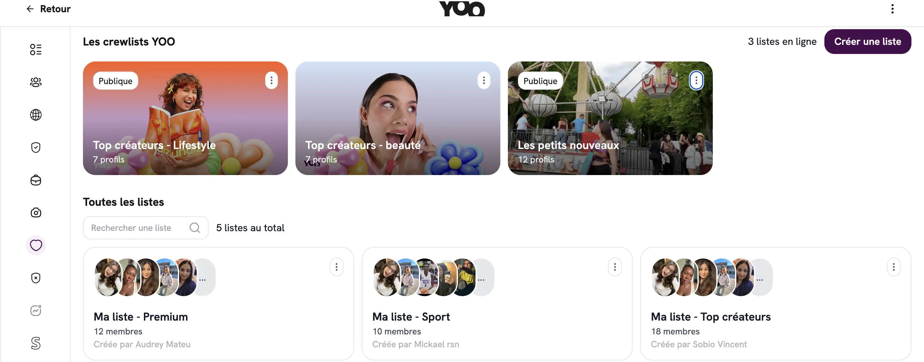 À la suite de la sortie de notre plateforme YOO ainsi que son application mobile, il est temps pour nous de franchir de nouvelles étapes grâce au lancement des Crewlists. Cette fonctionnalité a été conçue pour simplifier et accélérer la sélection des créateurs lors du lancement des campagnes.